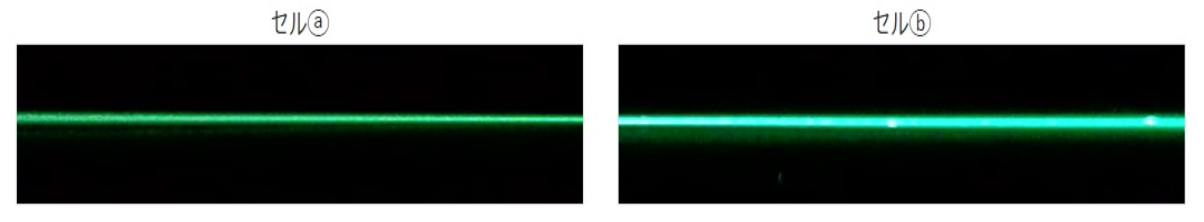 計測対象水にレーザを照射し、水中に含まれる粒子(UFB,コンタミ等)が発するレーザ散乱光を写真撮影し、その画像を二値化処理した上でdot値として数値化しています。測定水中の粒子個数濃度によりレーザ散乱光強度が変化する事から、これを捉えて画像処理をし、同時に2つのサンプル水を計測することでその差分を確認します。